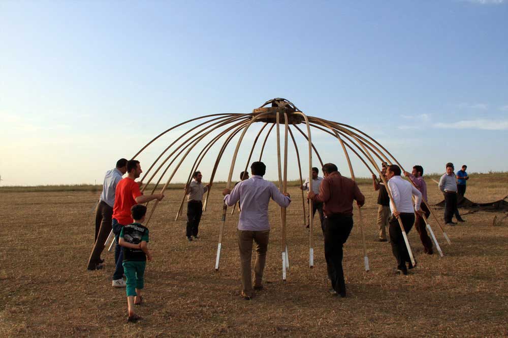 شاهسونها به مجموعه چند آلاچیق و کومهای که در یک نقطه برپا شده باشد، اوبه میگویند. محلی که اوبه در آن قرار گرفته و یا به جایی که چادرها در آنجا برافراشته میشوند یورد اطلاق میگردد. مشخصه اصلی یورد سنگ چینهای هلالی شکل (قوسی) است که به موقع استقرار اولین آلاچیق یا کومه در آنجا، برای گذاشتن فارماش (جا رختخوابی پشمی) و سایر اسباب و اثاث چیده شده و چوبهای چادرها به این فاصله تقریبی یک متر خارج از این سنگچین هلالی چیده میشوند. سبب اصلی چیدن این سنگها به خاطر مصون نگهداشتن اسباب و اثاث پشمین از تماس با کف زمین جلوگیری از نفوذ نم و رطوبت به داخل آنهاست. معمولاً هر فرد عشایر تا آخر عمر به خاطر دارد که در کدام یورد به دنیا آمده است. همچنین هرکدام از این یوردها دارای القاب یا عناوین قراردادی به خصوص هستند که ممکن است برخی از اسامی یادآور یک جریان تاریخی و یا واقعه و پیشامدی نیز باشد. به دلیل اینکه در مقایسه با سایر مناطق عشایری ایران هر دو ناحیه سردسیر و گرم سیر شاهسون، (تابستان ییلاق و زمستان قشلاق) آب و هوای سردی دارند به همین خاطر عشایر شاهسون به تجربه دریافتهاند از چادری استفاده نمایند که حتیالمقدور بیشترین هماهنگی را با شرایط محیطی داشته باشد.