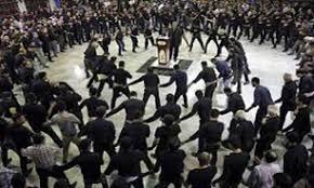 یکی دیگر از مراسم ویژه و بسیار جالب بوشهریها در ماه محرم، سینهزنی به سبک خاص است. بوشهریها برای سینهزنی ابتدا با تشکیل ۲ یا ۳ حلقه در اطراف مداح جمع میشوند و با ریتم و اشعار خاصی سینه میزنند.