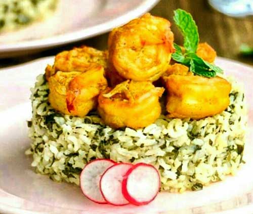 * در اواخر طبخ برنج کمی گشنیز خشک کوبیده ریخته تا پلو خوش‌طعم شده و عطر خوبی داشته باشد.